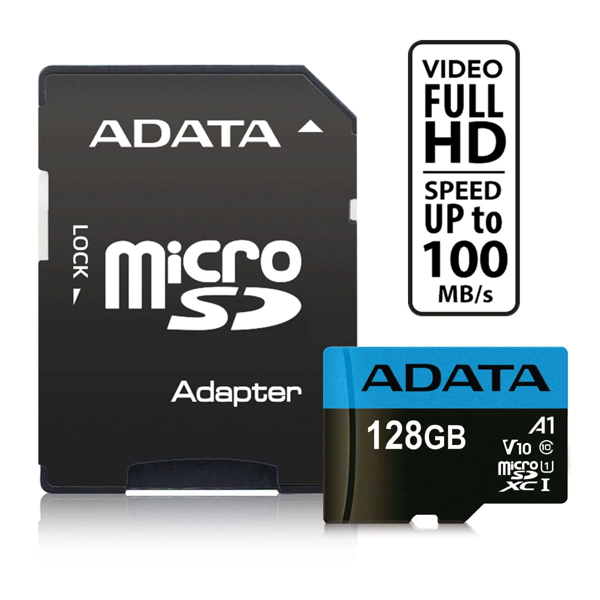 ADATA 128GB Premier microSDXC UHS-I / Class 10 V10 A1 Memory Card with SD Adapter, Speed Up to 100MB/s (AUSDX128GUICL10A1-RA1)