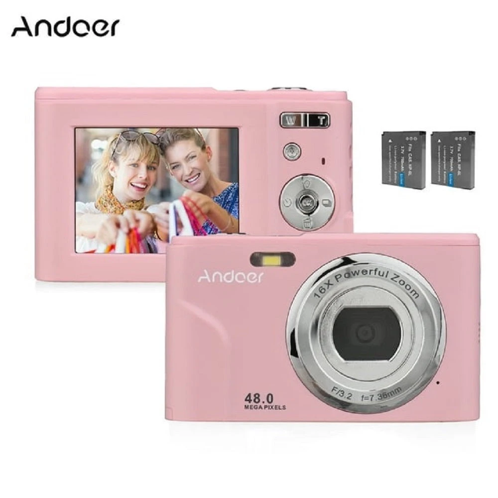 The Andoer Portable Digital Camera, a powerful and compact unit with 48 Mega pixel resolution, 1080P movie size, auto focus, F/3.2 aperture, and 16X zoom. Its 2.4-inch IPS display screen provides a clear view. Equipped with smart detection features like face detection and smile detection, the camera intelligently tracks faces and captures photos at the perfect moment. The beauty mode enhances your appearance for more attractive shots. With user-friendly functions such as selfie-timer options and anti-shaking mode, taking photos and videos is a breeze. Expand your storage with a Max.128GB external memory card for storing HD files.