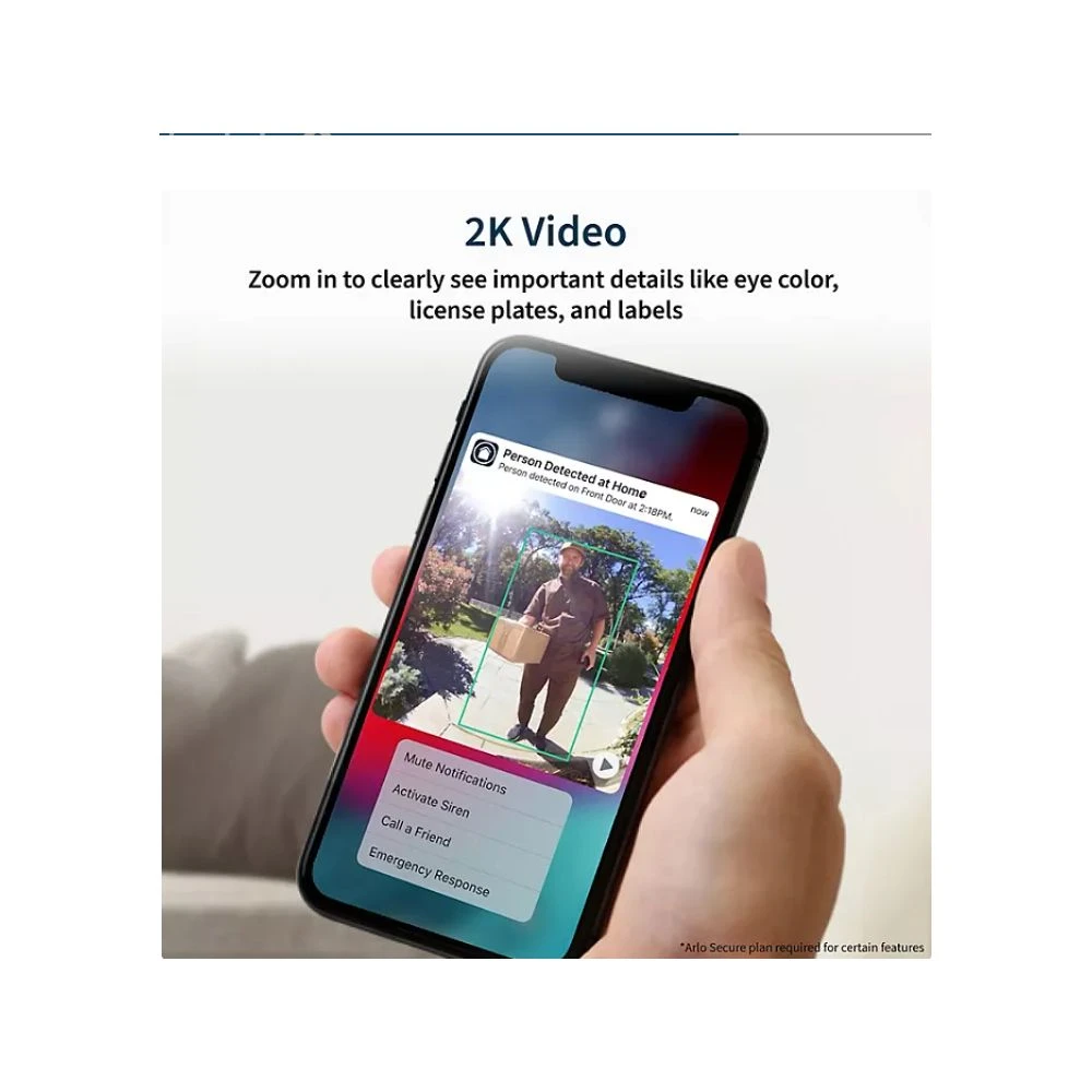- The Arlo Video Doorbell protects your front door with crystal-clear 2K resolution so you can zoom in without losing clarity.