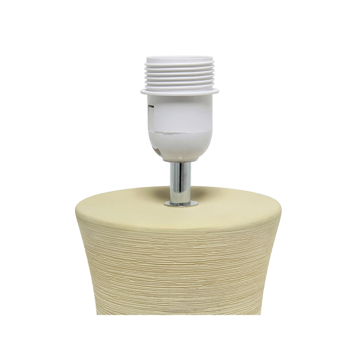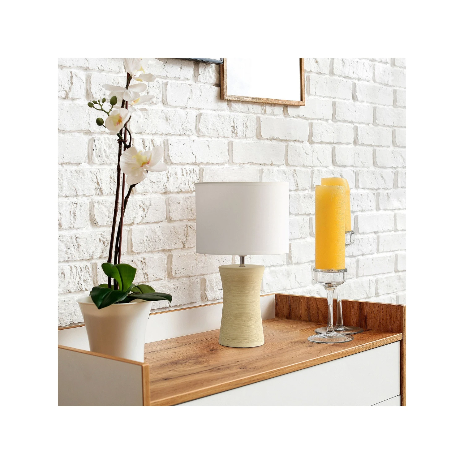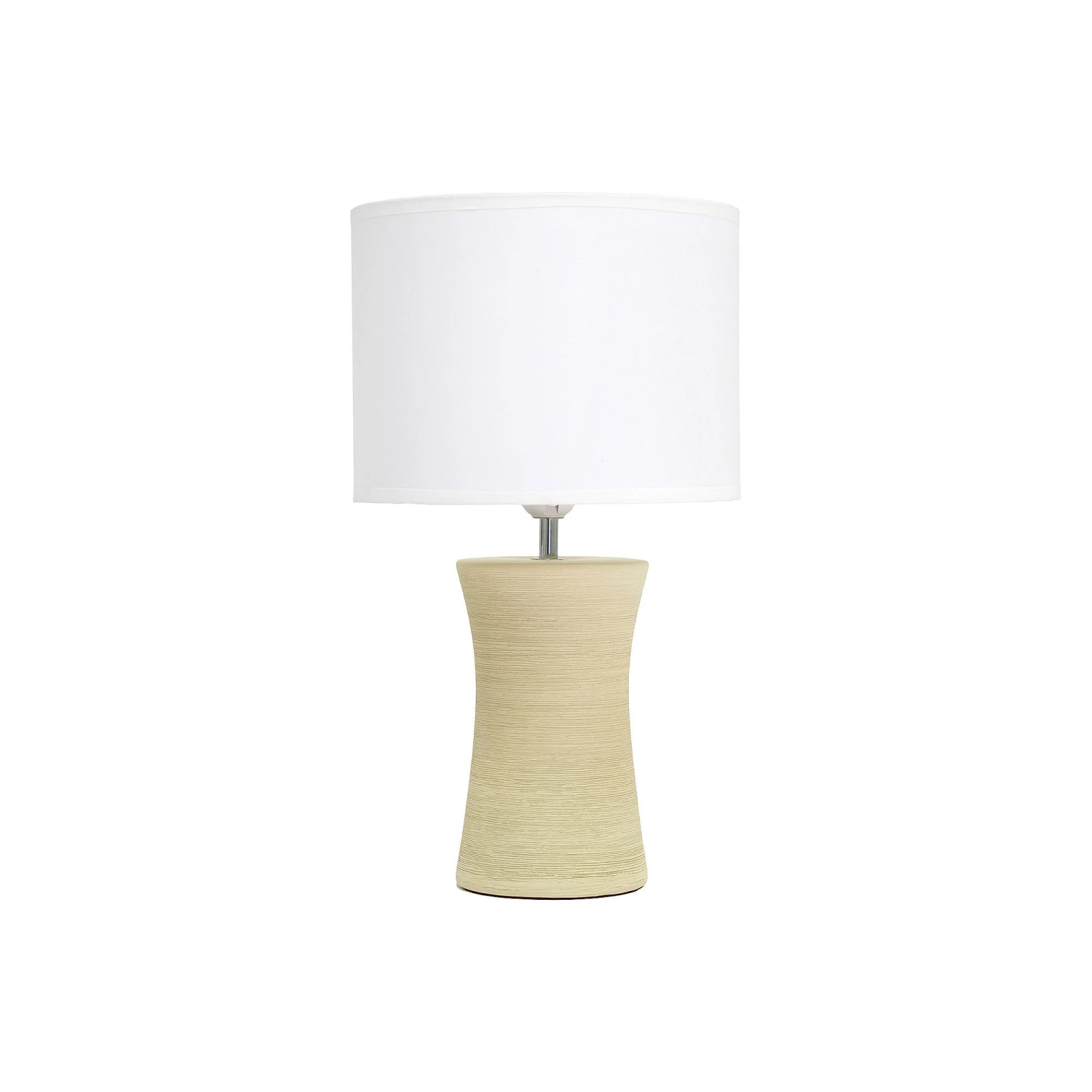 Style and functionality meet with this hourglass shaped table lamp. A horizontal linear pattern texturizes the base and is complemented by chrome accents. A solid white fabric shade is the perfect counterpart for this trendy lamp.