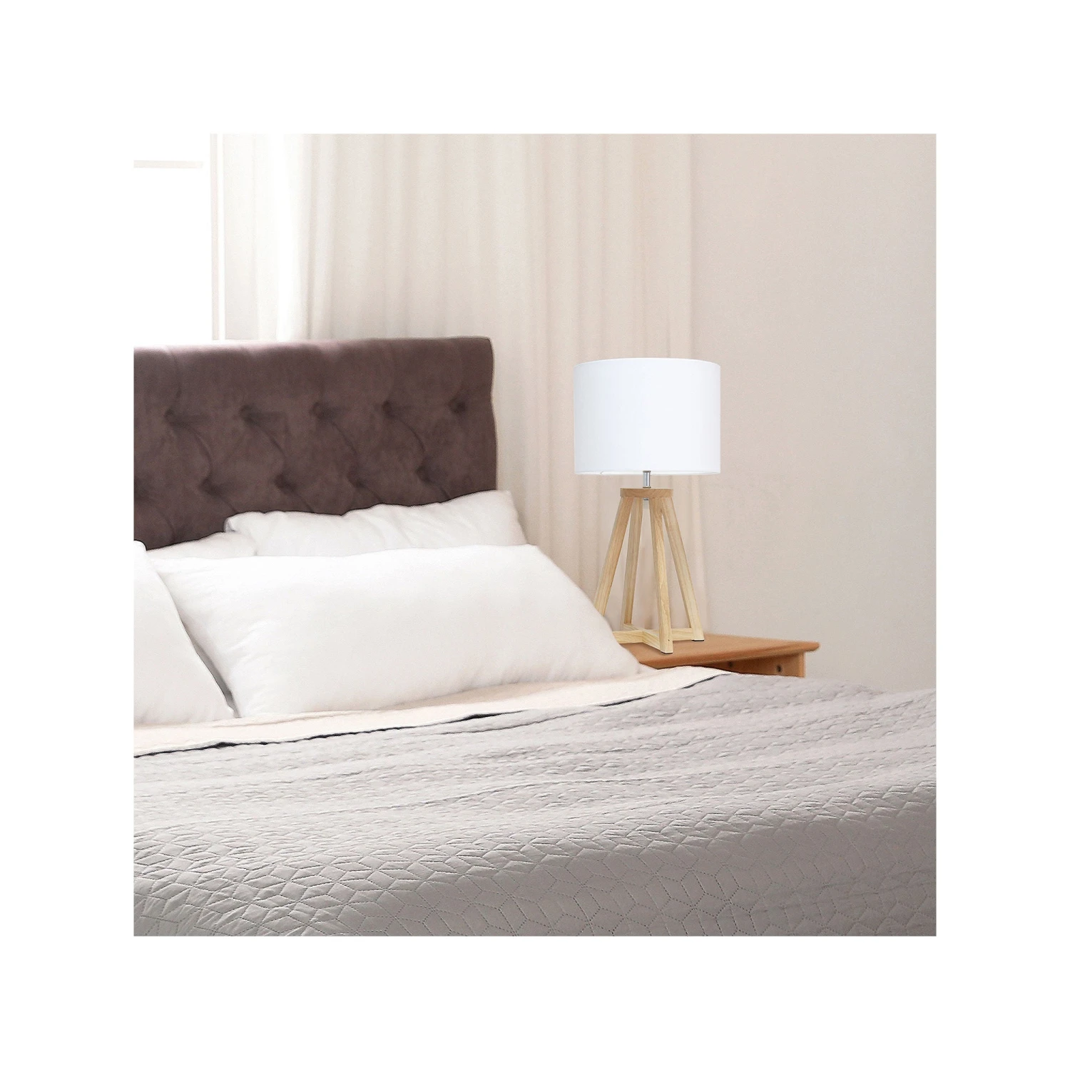 Add a touch of simplicity to your home with this contemporary lamp. The soft, black fabric shade compliments the geometric gray wood base for a clean, simple look. Perfect lamp for a bedroom, living area, office, kid’s room or college dorm.