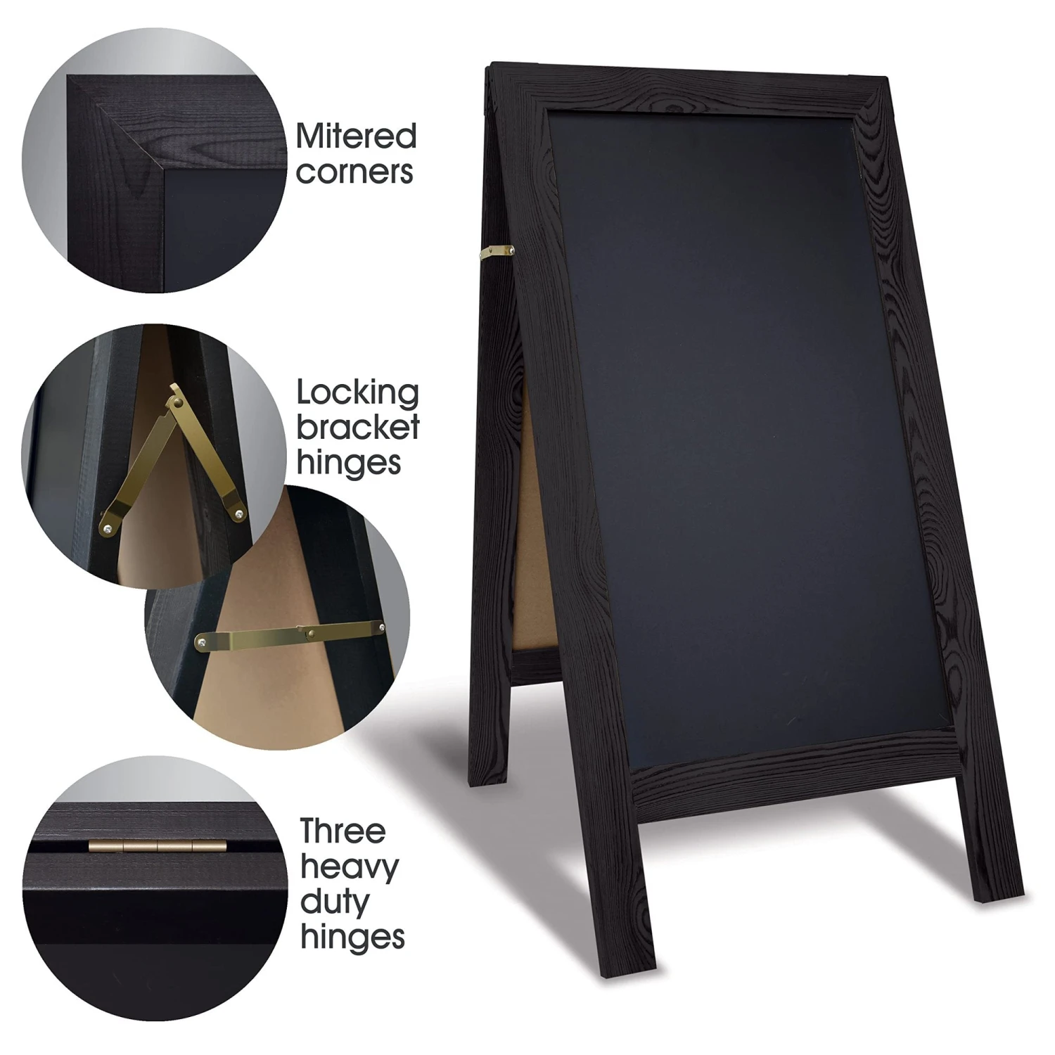 - Painted real wood (pine) framed 20″ x 40″ A-frame chalkboard with a 15.3″ x 28.8″ magnetic, drawing surface.