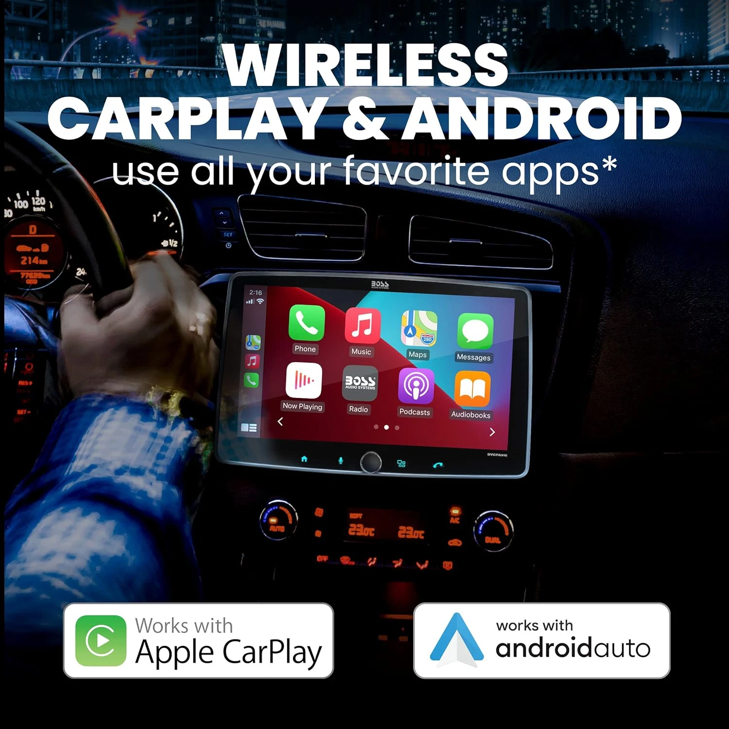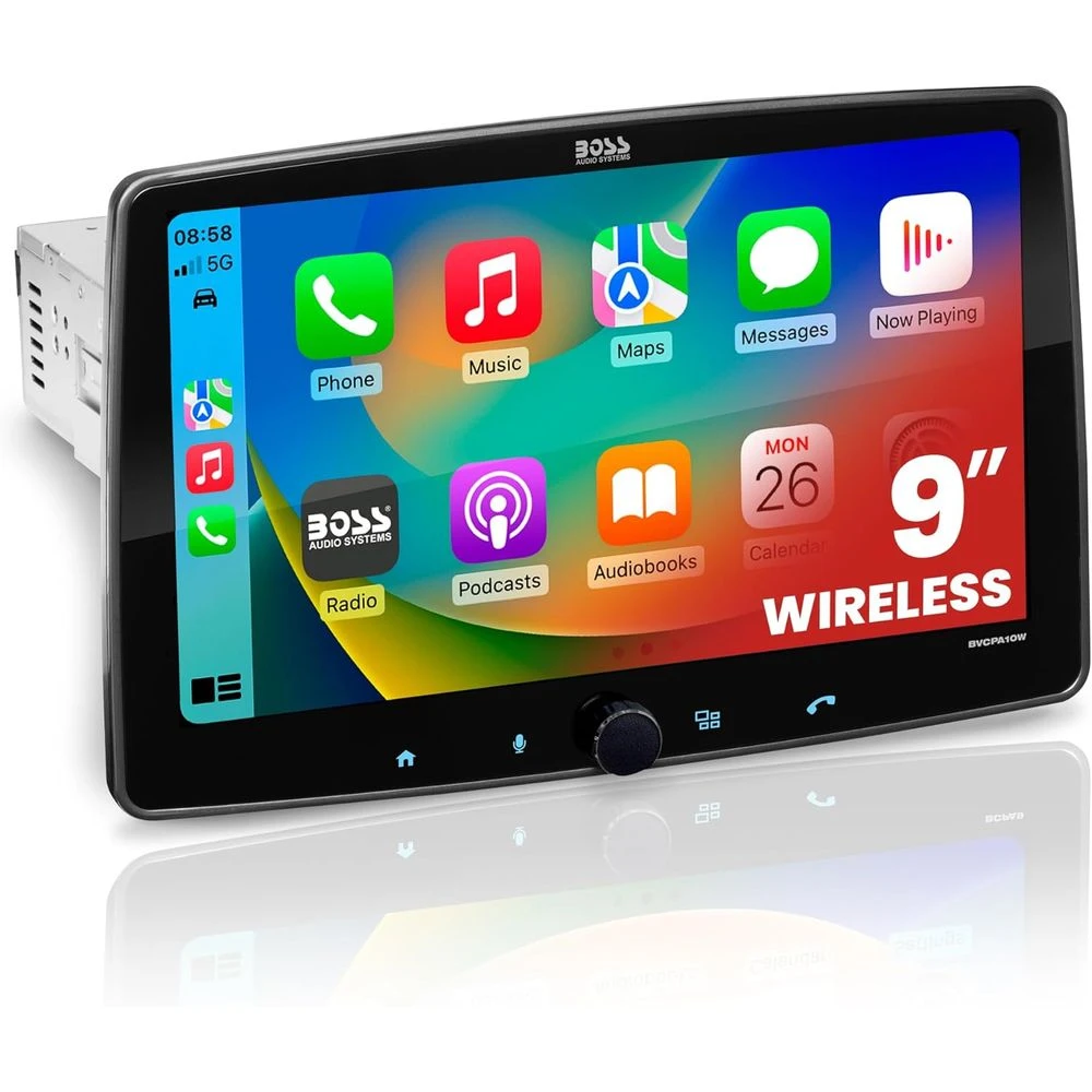 BOSS Audio Systems BVCPA9W Car Stereo – Wireless Apple CarPlay & Android Auto, Single Din, 9 Inch Touchscreen, Bluetooth, No CD DVD Player, AM/FM Radio Receiver Car Stereo, Wireless Apple CarPlay & Android Auto, 9″ Single-Din Touchscreen, Bluetooth, No CD, AM/FM, Backup Camera