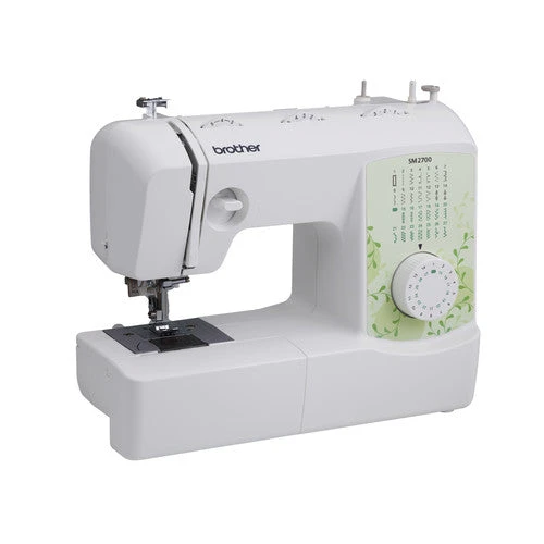 General InformationThe SM2700 features a lightweight, portable design, yet with a full set of built-in sewing features and included accessories. Perfect for beginner to more advanced sewers, it offers the versatility of 27 built-in stitches, with 63 stitch functions. Included are blind hem, decorative and quilting stitches, and an automatic, one-step buttonholer. Included are 6 included quick-change sewing presser feet: buttonhole, zipper, button sewing, zigzag, narrow hemmer and blind stitch feet. Designed for ease of use, this model comes with a built-in easy needle threader, jam-resistant Quick-Setâ„¢ top drop-in bobbin, and an automatic bobbin winding system. Includes instructional DVD and English and Spanish user manual.Technical InformationNumber of Built-In Stitches:27Threading Type:AutomaticBobbin Type:Top LoadingNumber of Buttonhole Steps:1Computerized:NoFeatures:LightweightFeatures:Needle ThreaderFeatures:Anti JammingFeatures:Built-in LightFeatures:Drop FeedFeatures:Built-in Accessory StorageFeatures:Reverse StitchingControls/IndicatorsControls:Stitch Select DialPower DescriptionPower Source:AC SupplyInput Voltage:110 V ACPhysical CharacteristicsColor:Glossy WhiteForm Factor:PortableHeight:12.1″Width:5.9″Depth:15.3″Weight (Approximate):12.60 lbMiscellaneousPackage Contents: