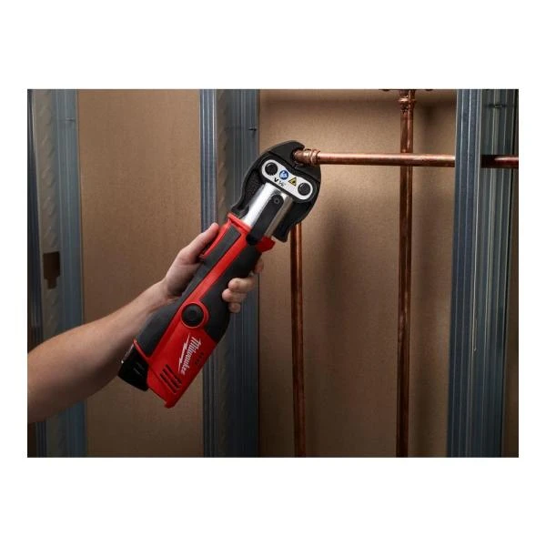 The M12 Force Logic Press Tool is the single lightest press tool in the market today and represents a new level in portability and accessibility around installed pipe. Featuring a one-handed, in-line design, the M12 Forde Logic Press Tool will operate nearly anywhere you can fit your arm. Utilizing Milwaukee Red Link Electronics, the M12 Force LOGIC Press Tool monitors the Force output to ensure quality connections and provide the user peace of mind by visually indicating both a secure connection and when the tool needs calibration. Featuring the best calibration standard in the industry, the tool only require service every 32,000 crimps. This allows users up to 4X more connections between services, keeping the tool on the jobsite up to 4X longer than competitive units. Powered by the M12 Red Lithium battery means this is the only press system where you can Cut, Fasten and Connect on One System.