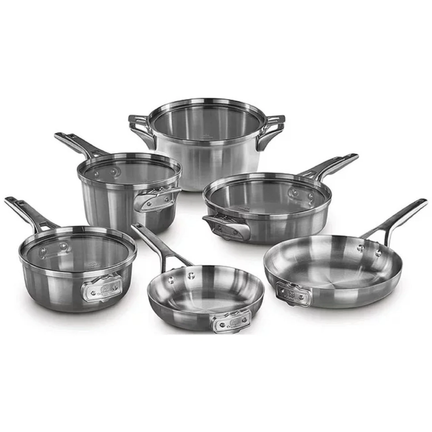 Calphalon Premier Stainless Steel Cookware delivers precision cooking performance, with an elegant, classic look that will inspire any chef. The unique, space-saving design securely stacks to save 30% more space,* and the cookware and flat glass covers stack and nest in any order.** The 3-layer metal construction features a heavy-gauge aluminum core that distributes heat evenly and allows you to brown, sear, and saute with consistency and confidence. The elegant stainless steel finish is dishwasher-safe for easy cleanup.