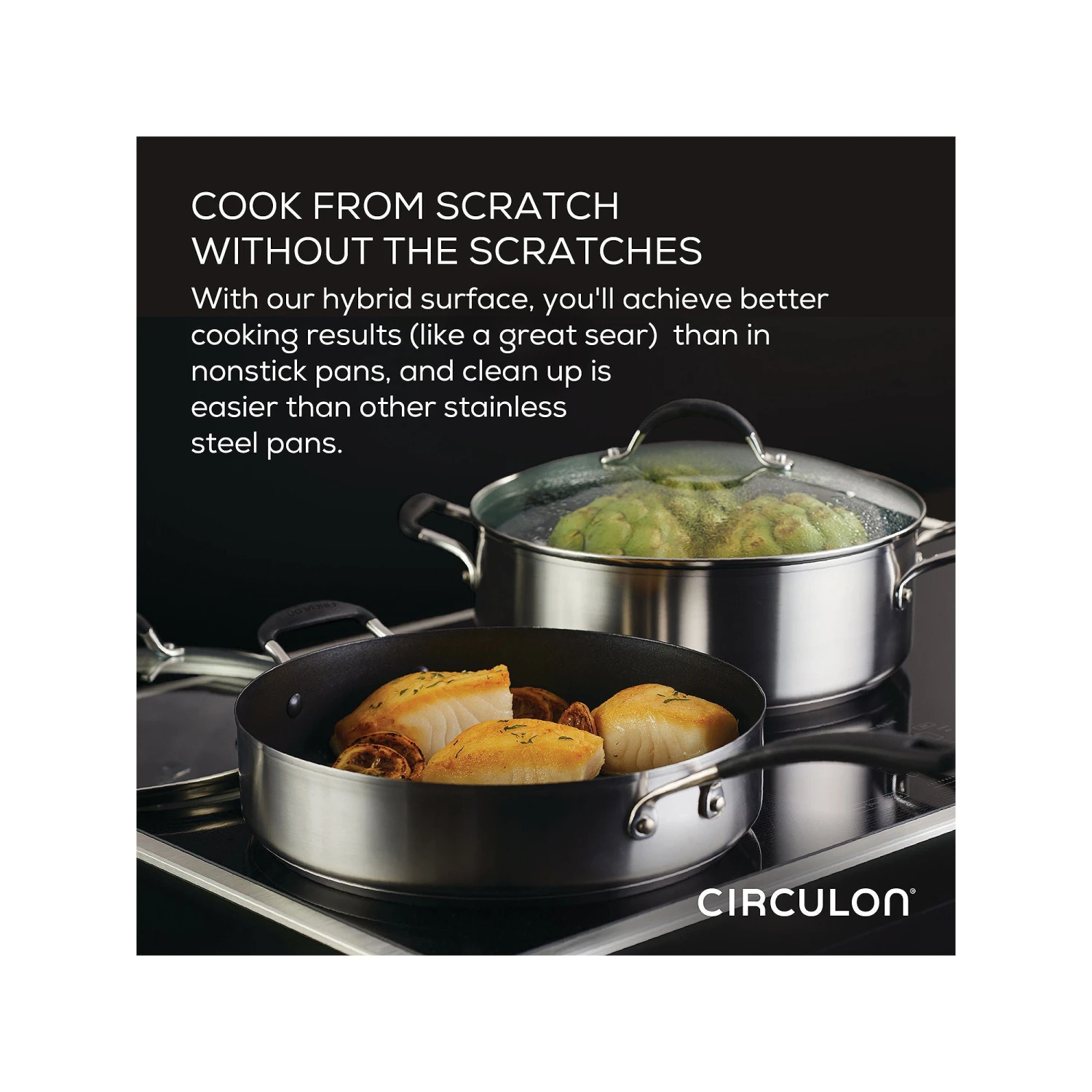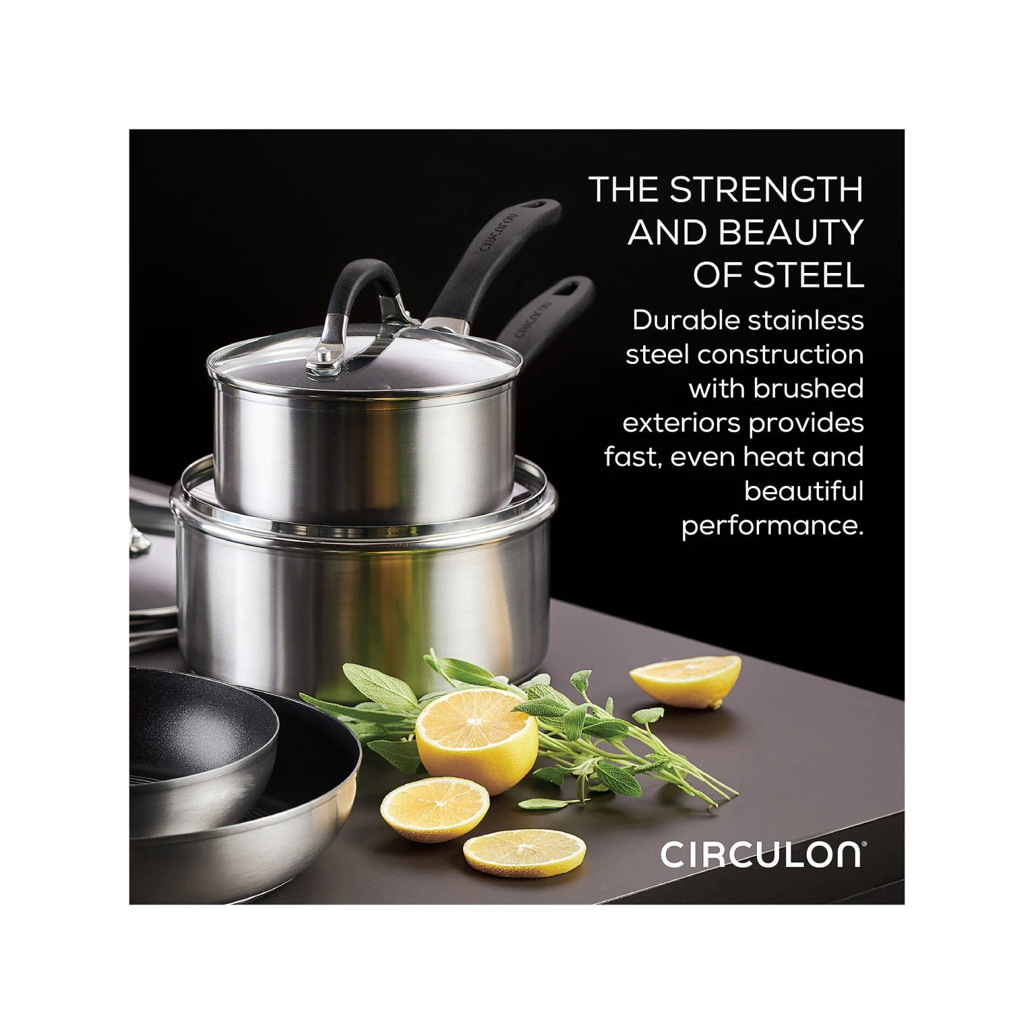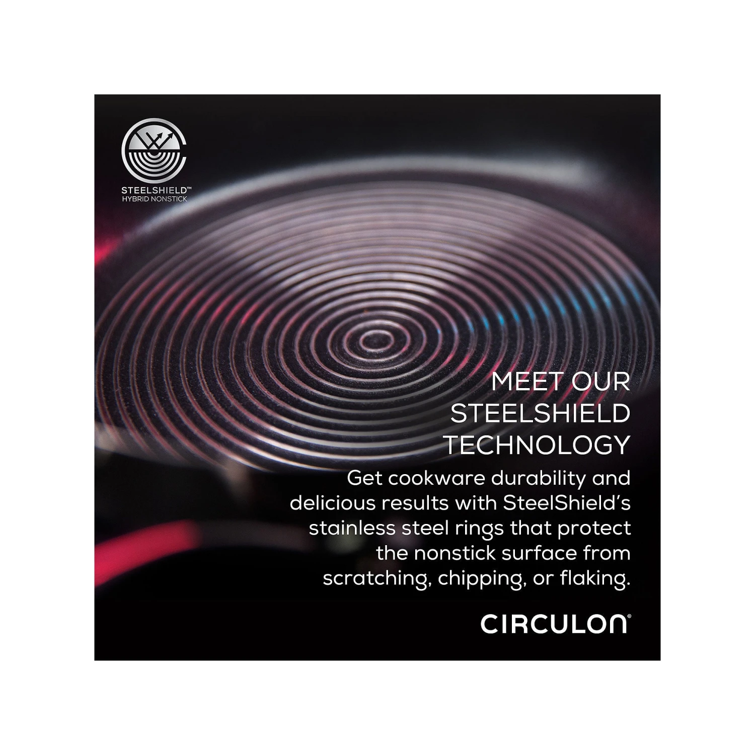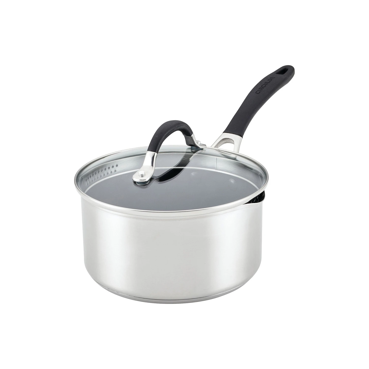 Welcome to cooking without worry. This perfectly constructed saucepan has been designed for the way you cook today. Combining the beauty and durability of stainless steel with the ease and convenience of nonstick, this sophisticated sauce maker from Circulon is the best of both worlds. Circulon’ s Steel Shield technology features elevated steel rings to protect the nonstick surfaces, so you never have to worry about scratched nonstick again. With an extra thick base, Circulon SE-Series pots and pans heat up quickly to reduce hot spots on any cooktop, including induction. Featuring silicone grips over stainless steel handles, a convenient glass straining lid (so long, colander!) and a stylish brushed stainless-steel exterior, this versatile 3-Quart saucepan and straining lid combo is dishwasher safe for easy cleanup and oven safe up to 400°F for cooking a wide range of recipes. Plus, Steel Shield nonstick is completely metal utensil safe. Circulon Steel Shield — the greatest thing since nonstick.