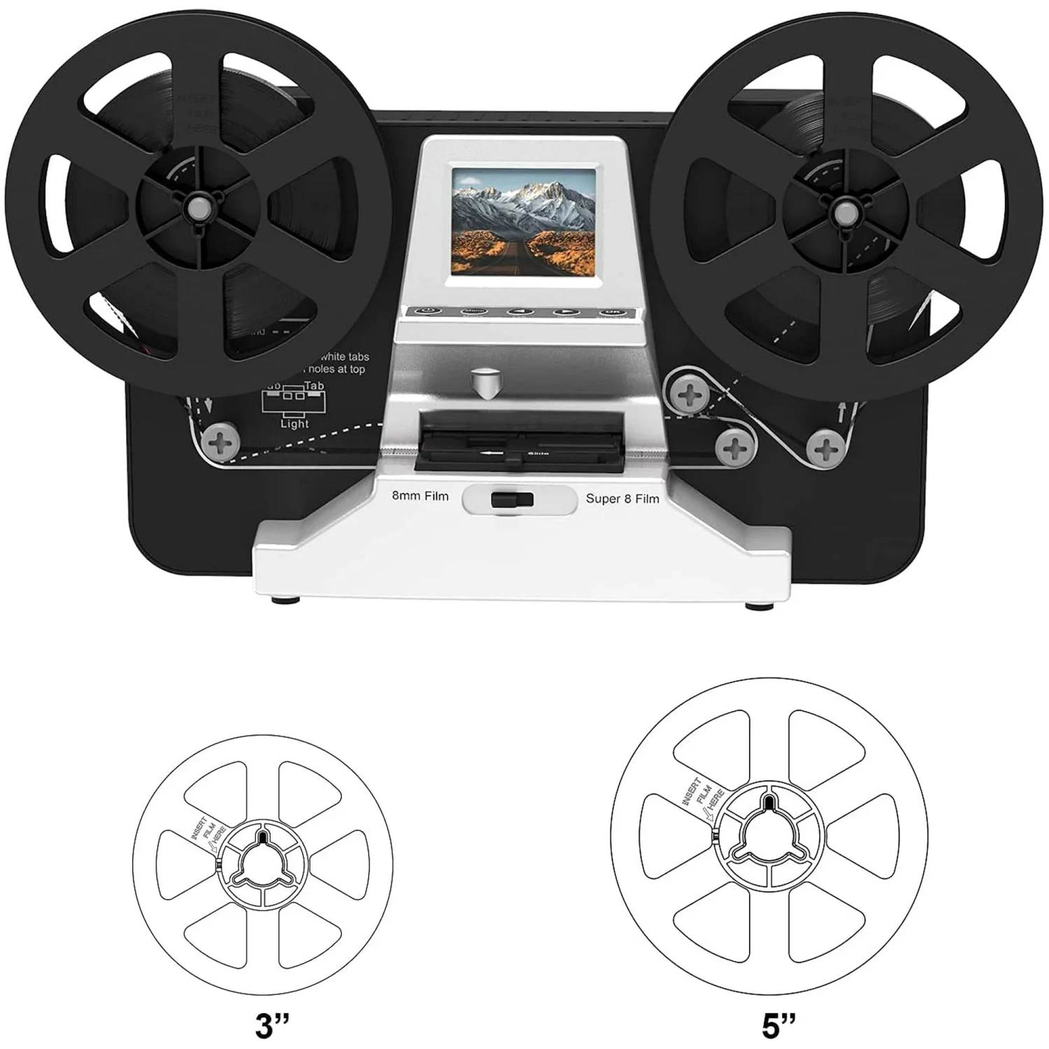 DIGITNOW M127-Silver 8mm & Super 8 Reels to Digital MovieMaker Film Scanner Converter Convert 3 inch and 5 inch 8mm Super 8 Film reels into Digital with 32 GB SD Card