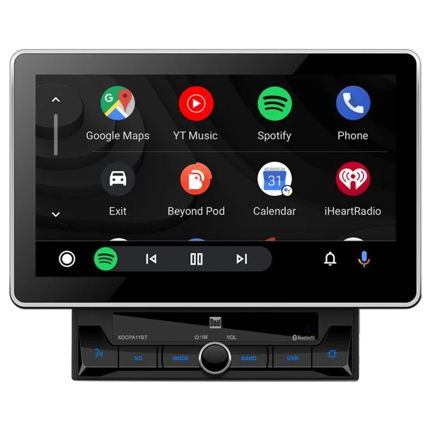 The Dual Electronics XDCPA11BT 10.1″ Capacitive Touch Screen Digital Media Adjustable Double DIN Car Stereo Receiver with Built-In Apple CarPlay /Android Auto, Bluetooth, USB & microSD ports will make the best addition to any vehicle. Your Dual digital media receiver with Apple CarPlay & Android Auto was precisely crafted with you in mind. With both platforms built into your car stereo receiver Siri or Google Assistant have just become your personal assistant on your car journey; they will help you make/return and listen to voicemails calls, she will also be able to send, read and reply to text messages, access all your favorite music while displaying artist and track information right on your screen, and provide turn-by-turn directions onto the receiver’s screen.