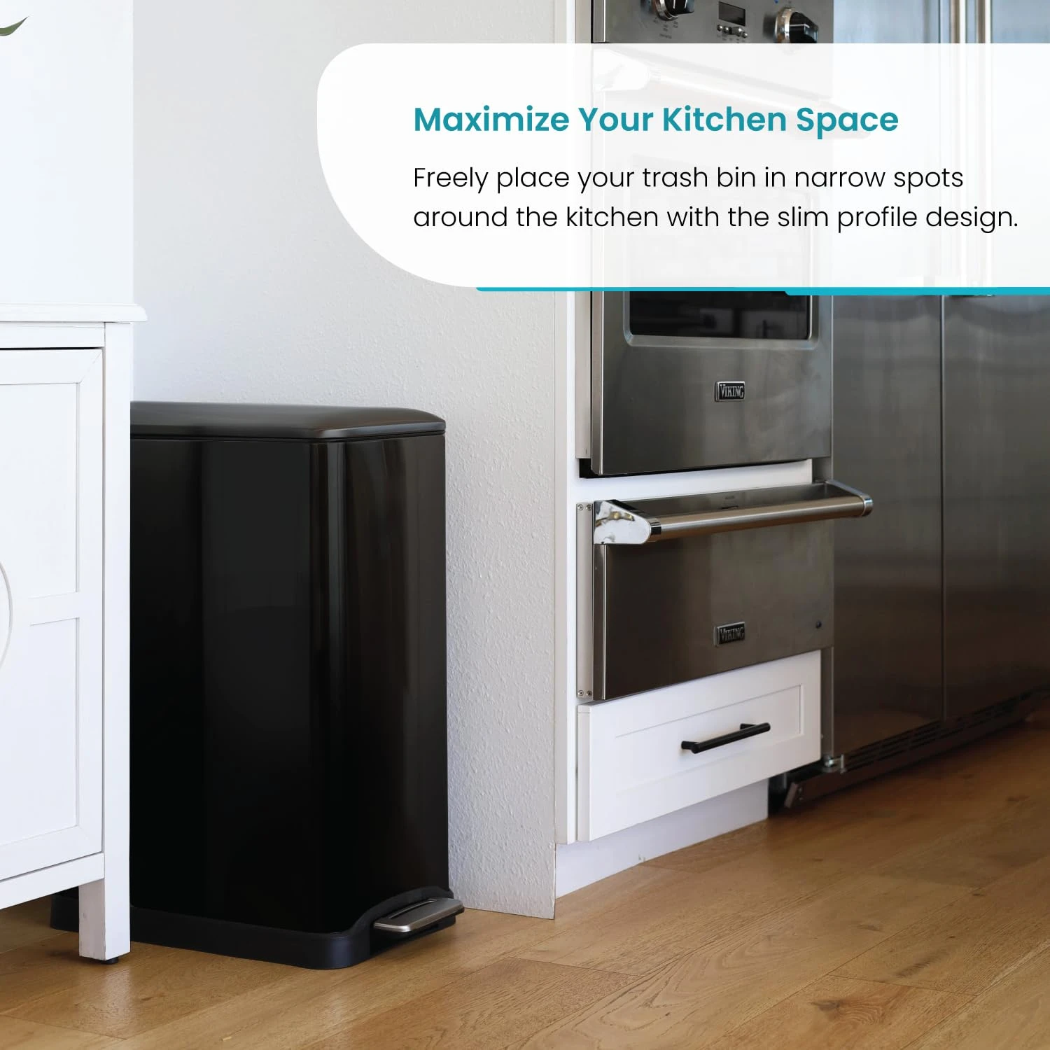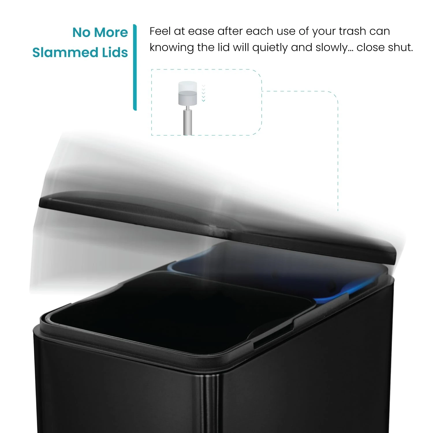 - Recycling Made Simple – Efficiently sort your trash and recyclables with easy-to-access dual compartments. The waste compartment holds up to 8-gallons, while the recycling compartment holds just over 5-gallons for a total of 13-gallons