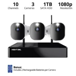 Night Owl Night Owl WM-WNP2-4L1 10 Channel Wi-Fi NVR, 4 Wi-Fi IP Light Cameras And 1TB HDD, White
