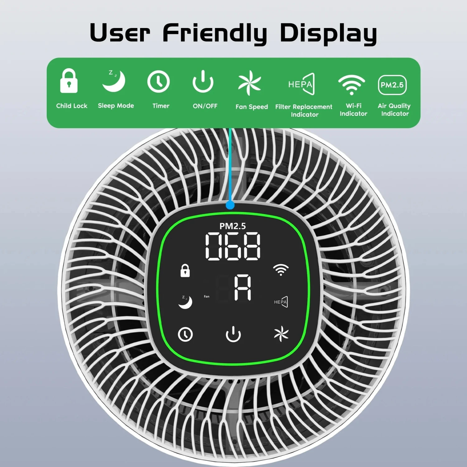 - Smart APP & Voice Control: With the free Smart Home Life APP, you can control your air purifier such as turning it on/off, checking filter life, and setting timers wherever you are. You can also connect to Alexa or Google Assistant through the APP, and give the air purifier voice commands. (E.g: Alexa, turn on the air purifier)