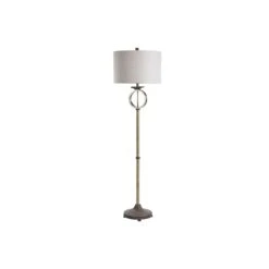 StyleCraft Stylecraft Brass Finish Ring With Moulded Wood Like Accents Steel Floor Lamp Brass