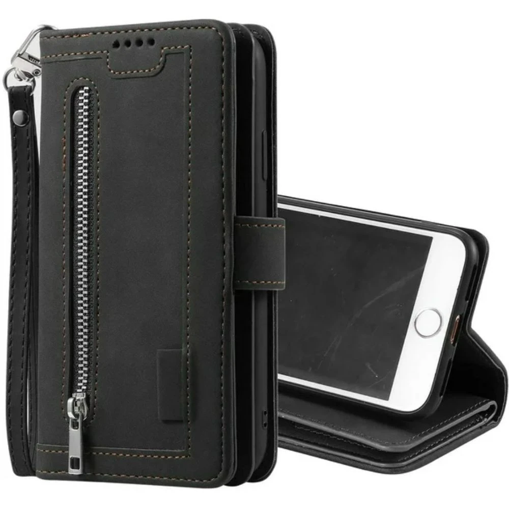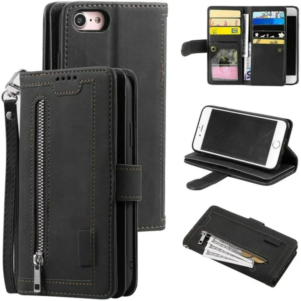 - Wallet Case for iPhone 6 Plus iPhone 6S Plus,9 Card Holder Slots Zipper Pocket Handbag Case PU Leather Case – (Black)