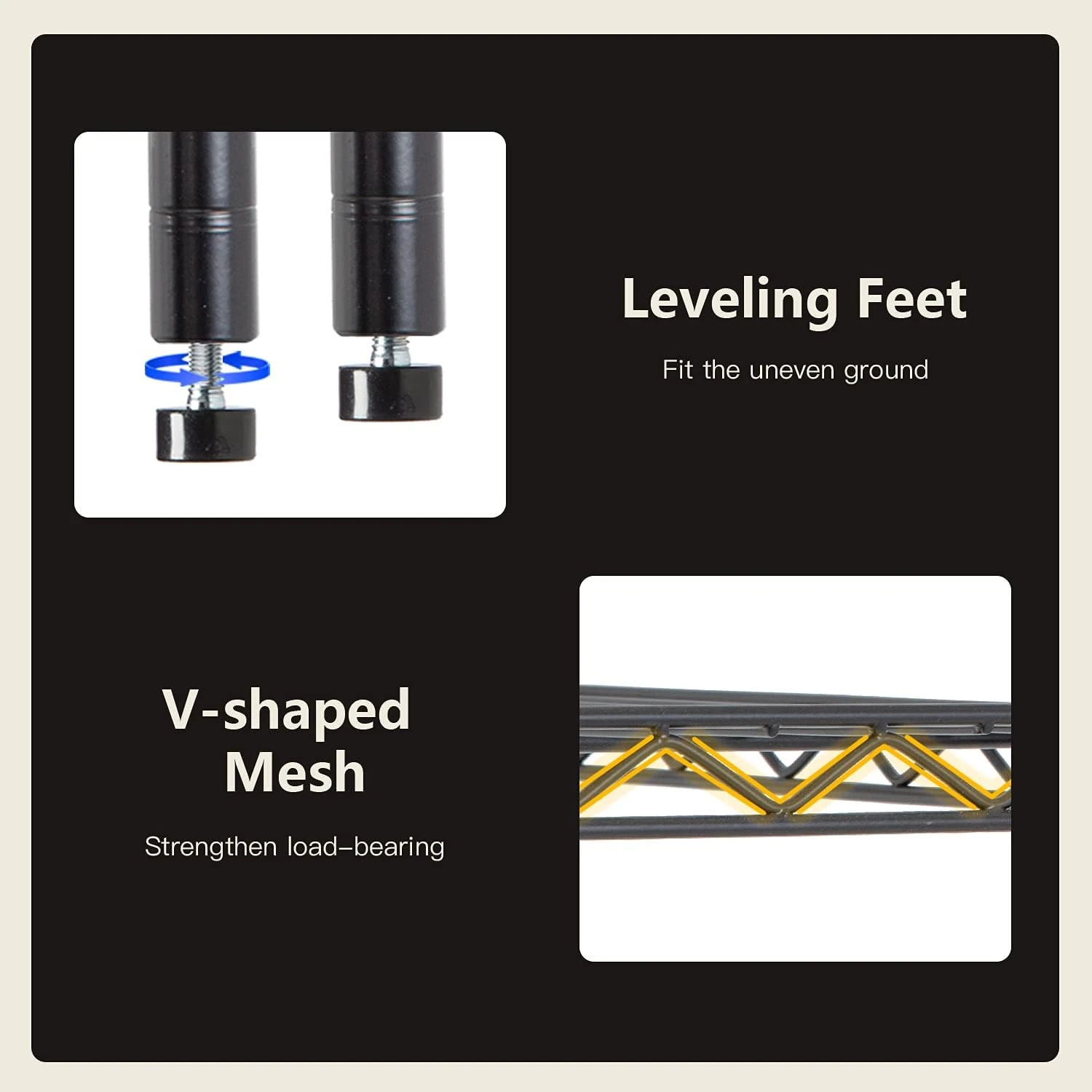 - HIGH-QUALITY MATERIAL – This iFanze metal shelf is made of heavy steel so it has an extremely strong load-bearing capacity. The metal rack is covered with a black powder coat finish that not only has a smooth finish but also resists water rust or corrosion. Placing the shelving unit in your kitchen or laundry room is no problem.