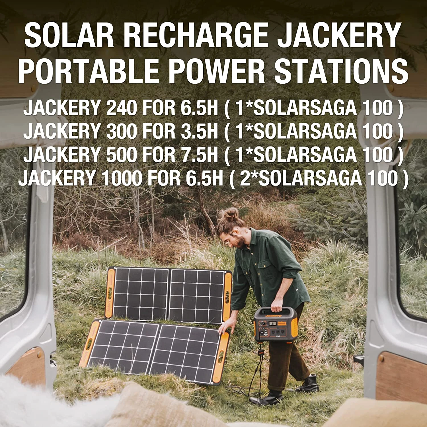 Jackery SolarSaga 100W Portable Solar Panel for Explorer 240/300/500/1000/1500 Power Station, Foldable US Solar Cell Solar Charger with USB Outputs for Phones (Can’t Charge Explorer 440/ PowerPro)