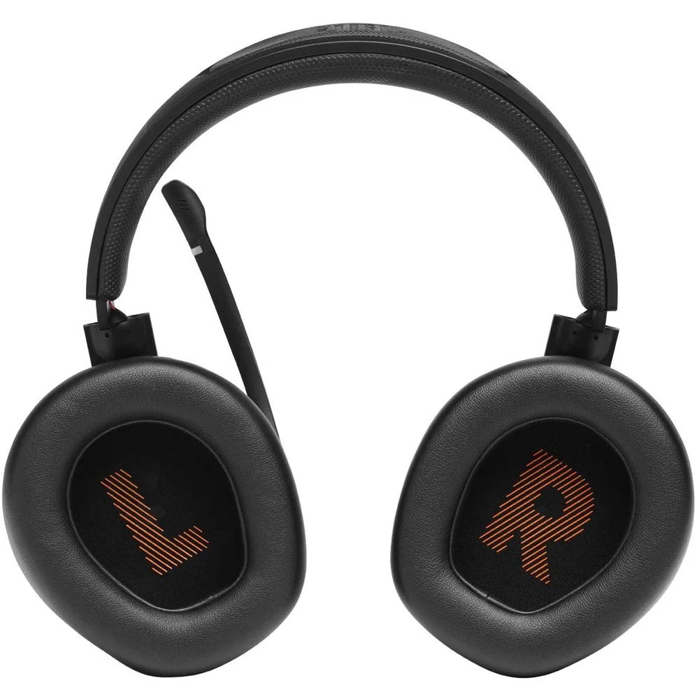 Items delivered: JBL Quantum 400 wired over ear gaming headset with boom mic in black, RGB lighting effects, compatible with PC, Mac, Xbox, PlayStation, Nintendo Switch, mobile and VR.