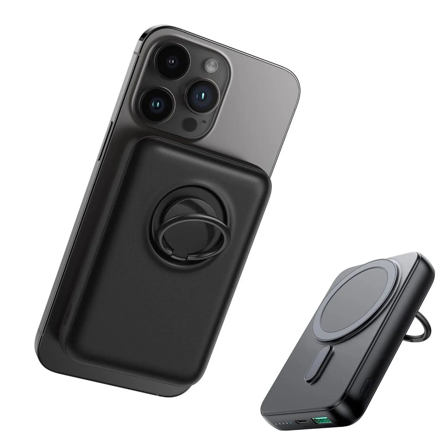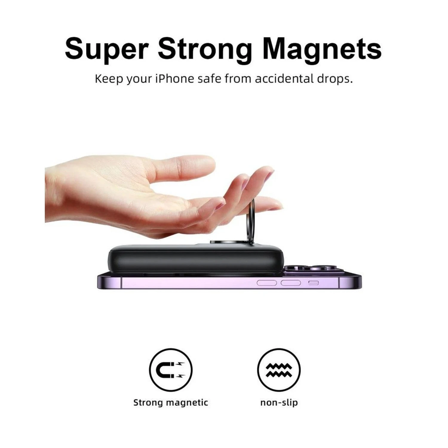 - Magnetic Power Bank with Kickstand: Just snap and charge your iPhone easily while the practical phone ring grip can be as a stand, offering hands-free and comfortable viewing experience at anywhere
