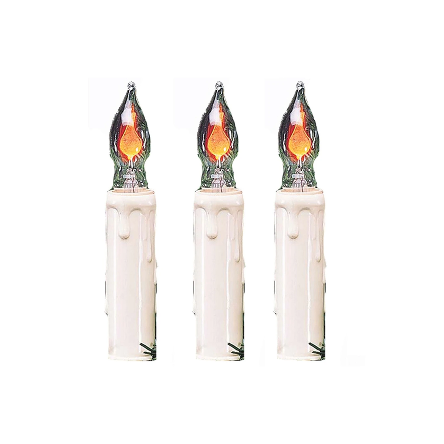 This Kurt Adler 7-light flicker flame candle light set is a beautiful, festive way to add to the lighting of your holiday decor. Each light features a white candle with a flickering artificial orange flame inside a clear bulb.