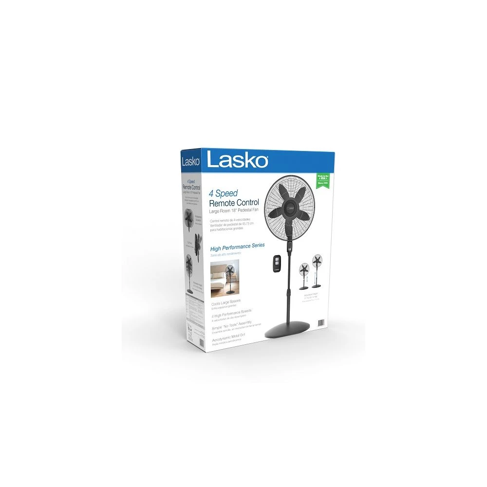 The Lasko S18605 is a black 18 inch oscillating adjustable stand fan with a streamlined metal grill and remote control. If it’s maximum performance you seek, this pedestal fan is a worthy best pick for both large and small spaces. Powered by 4 energy-efficient speeds, this 5 blade fan with premium grade electric plug-in motor is designed to move a lot of air, even on the low setting.