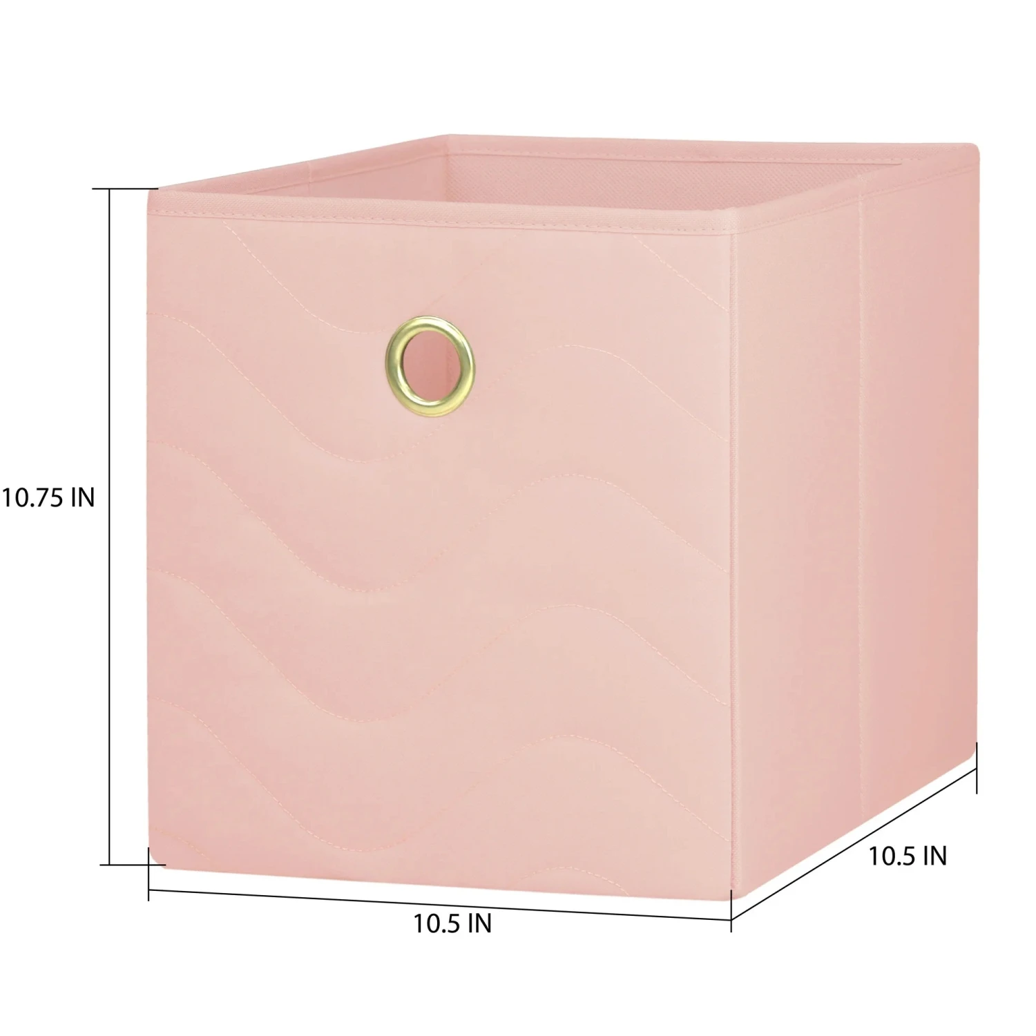 Our Mainstays Pink Blush Collapsible Quilted Fabric Storage Bins are just what you need to help you create an organized home. Perfect for storing kids to adult clothes, books, electronics and more, these bins’ 10.5-inch by 10.5-inch by 11-inch size offers plenty of room to keep a wide variety of belongings neatly tucked away, and their sturdy, round metal handle allow you to pull them off shelves and slide them back in with ease. You can utilize our Mainstays Storage Cube’s organizational expertise in your living room, bedroom, laundry room, and dorm room. When not in use, you can easily fold the bin down flat and keep it stored away in your closet for later. The fabric storage cubes are made to fit with our Mainstays Cube Storage Organizers (not included) and are designed with a durable polyester fabric that holds their shape. With a variety of colors to choose from, you’ll be able to perfectly match your home decor when you get organized with our Mainstays Collapsible Fabric Storage Bins.