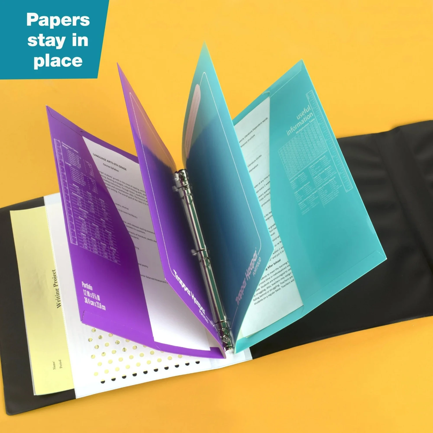- Includes 2 folders with vertical pockets that trap loose papers so they won’t fall out