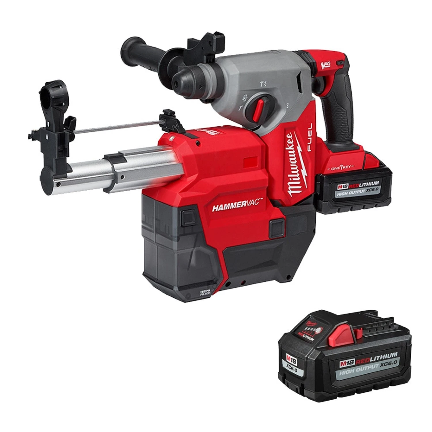 The M18 FUEL 1-in SDS Plus Rotary Hammer ONE-KEY Kit w/ Dust Extractor is the next generation of cordless rotary hammers delivering ultimate jobsite performance and productivity. The M18 FUEL 1-in SDS Plus Rotary Hammer is the Fastest Drilling rotary hammer in its class, includes AUTOSTOP Control for Enhanced Safety, and has the ability to drill up to 125 3/8-in x 2-in Holes Per Charge when paired with the M18 HIGH OUTPUT XC6.0 Battery.