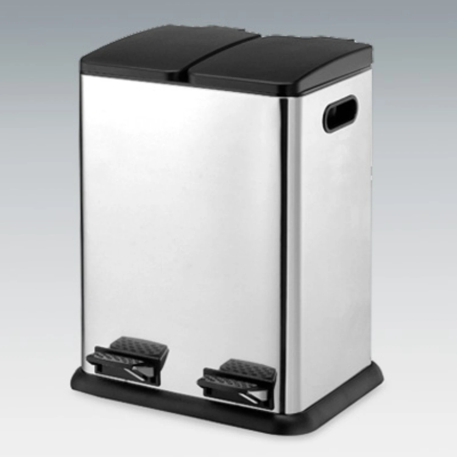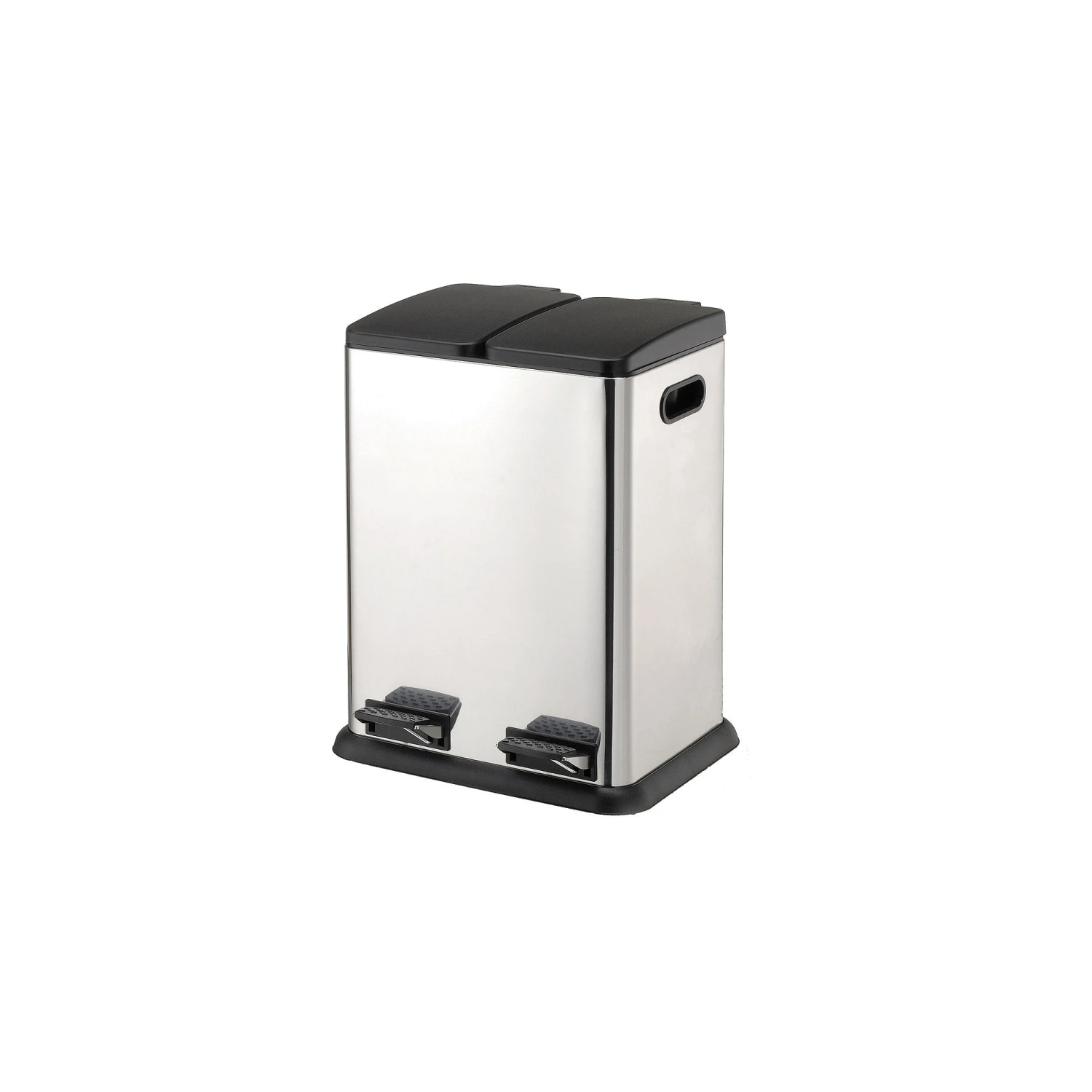Enjoy this eco-friendly two compartment step on recycling bin in your home. Features a sleek design with black accent for your room’s style. Removable plastic buckets with handles eases trash removals and cleaning.