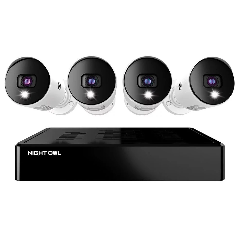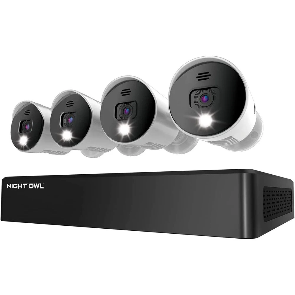 Night Owl Expandable 4 Channel Wired Bluetooth DVR with (4) Wired 4K Ultra HD Spotlight Cameras and 1TB Hard Drive