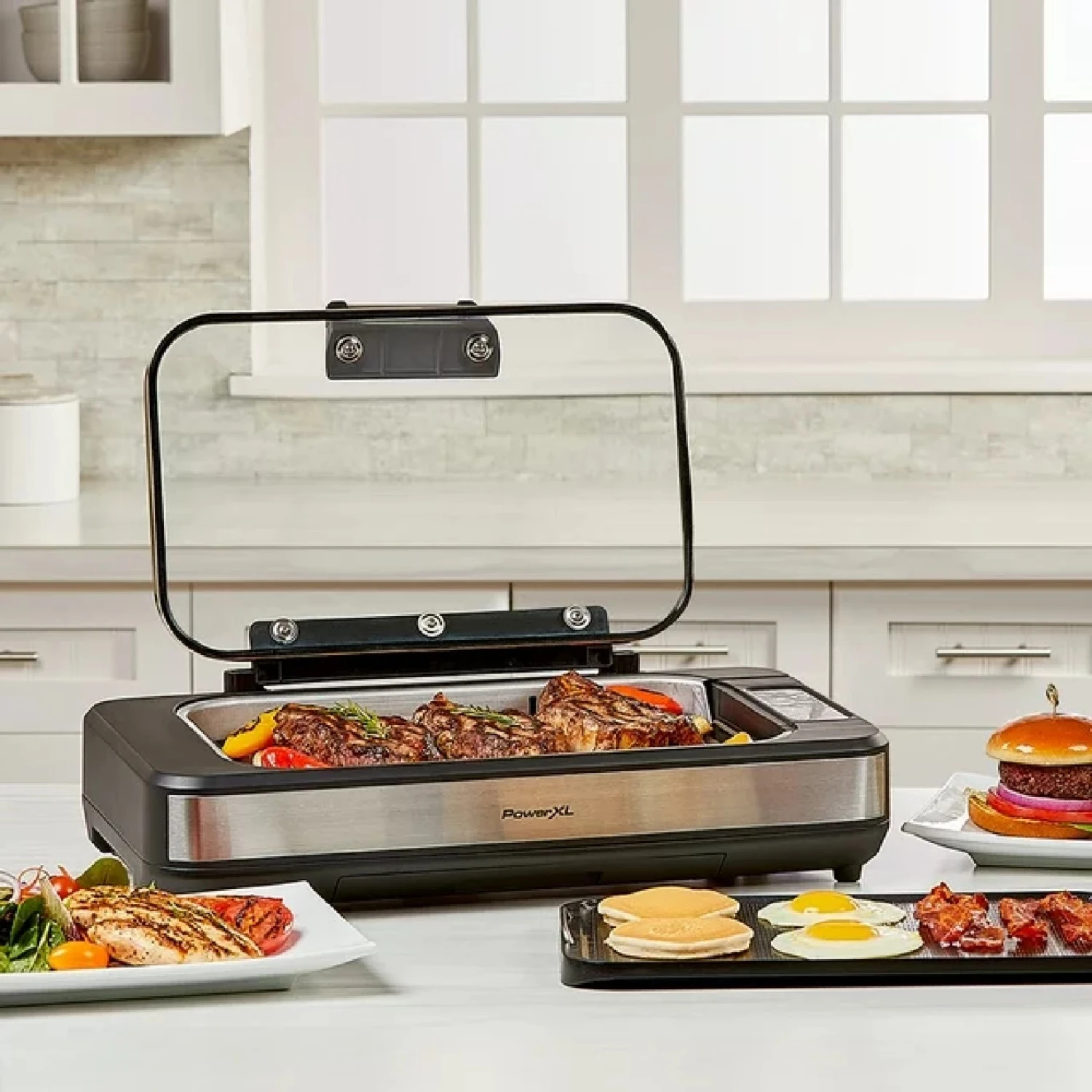 Grill smarter, better & faster any day of the year virtually smokeless. The PowerXL Smokeless Grill Elite Plus brings outdoor-grilled taste and flavor indoors on a premium, die-cast aluminum grill plate. The commercial-grade plate heats quickly and evenly to lock in juices and flavor with even doneness and char-grill marks.