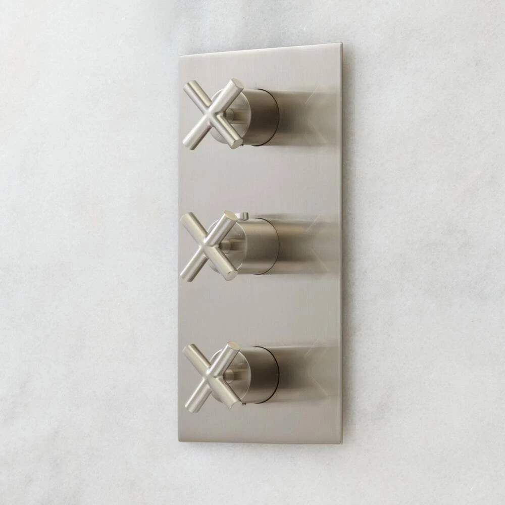 - Use the Modern Rectangular Thermostatic Valve for your custom shower update.