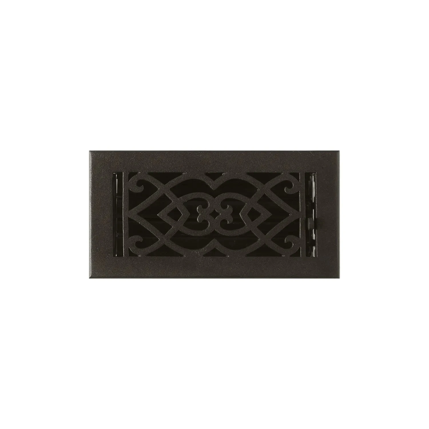This cast iron floor register is perfect for a Victorian style home with its gorgeous heart-shaped pattern. Features a smooth Black Powder Coat finish and includes removable louvers.