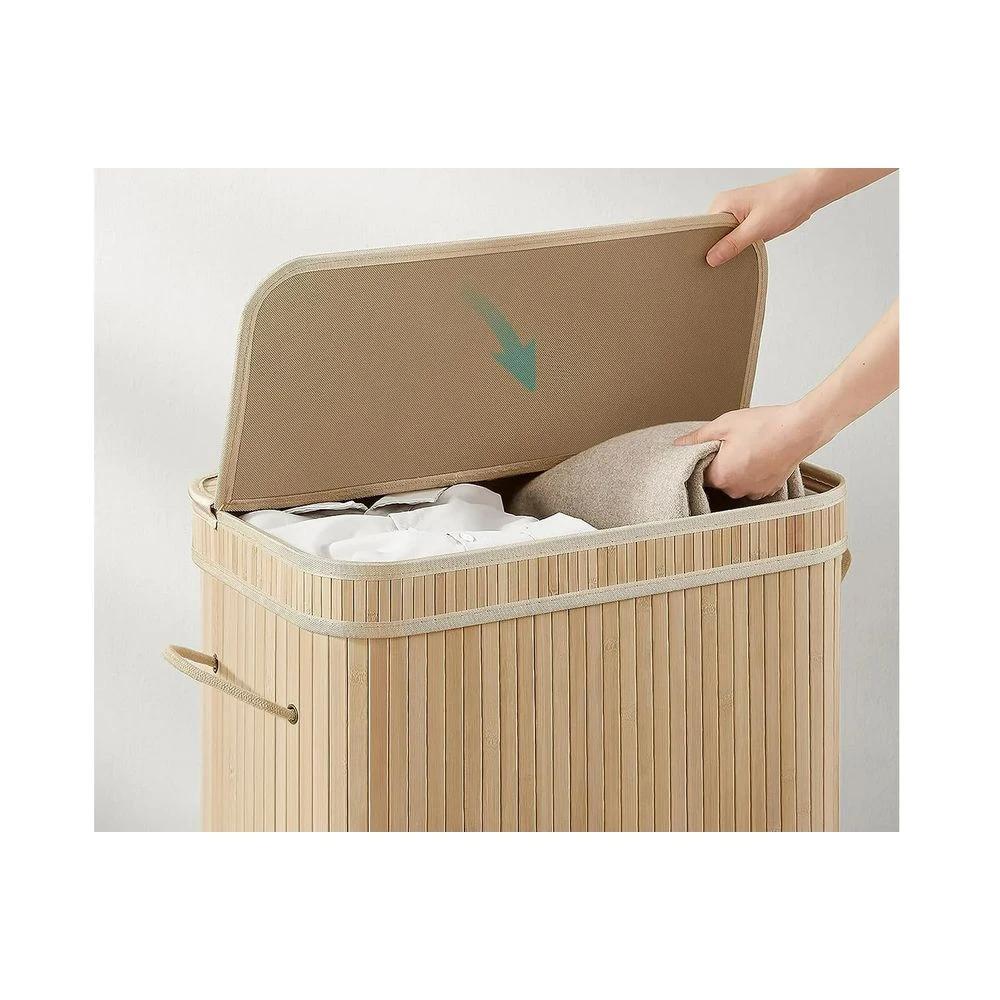SONGMICS 100L Bamboo Laundry Hamper with Lid Laundry Basket with Handles, Natural