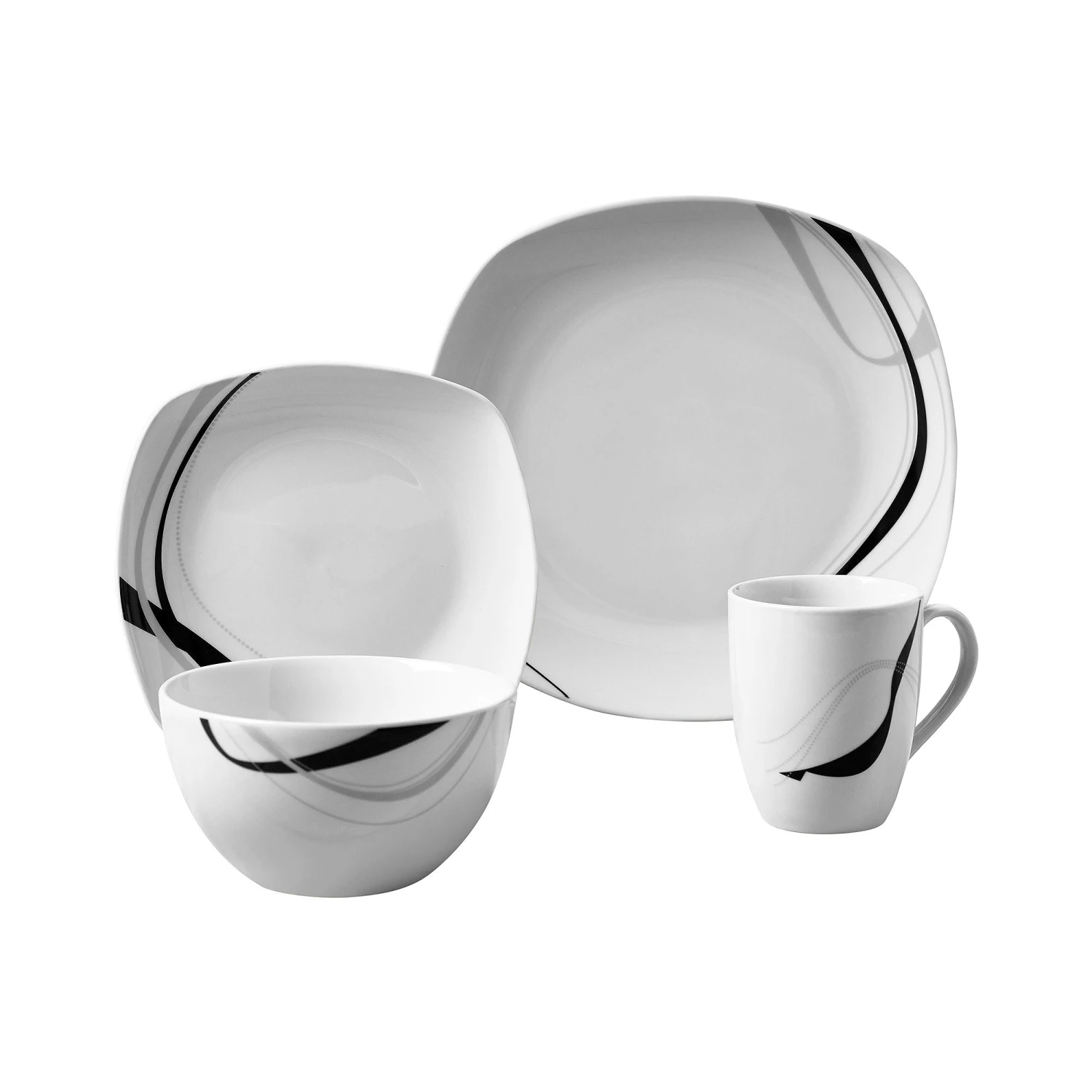 Tabletops Gallery Dinnerware Collections bring casual elegance to any table using minimalist style, clean lines, and smooth, pure white surfaces in a classic soft square or round shapes. The sound of plates breaking can be cause for celebration…unless it’s your plate that just hit the floor and broke into a million pieces. Fear not, this set is made with highly durable Vitrified Porcelain that is fired at a much higher temperature making it chip resistant. While dropping them onto a tile floor isn’t recommended, this set can take the repeated dropping of heavy knifes or forks! This set is dishwasher safe. For even more convenience, feel free to use them in the microwave and oven up to 400°F. A setting for four. This set comes with a complete service for 4 people which includes 4- 10.5″ Dinner Plates, 4-8″ Salad Plates, 4-5.5″ Cereal Bowls, and 4-11oz Mugs. Like to entertain? Get 2 or 3! The perfect gift Know anyone that likes to cook or loves entertaining? This set is perfect for them. Boxed and ready to go for any occasion.