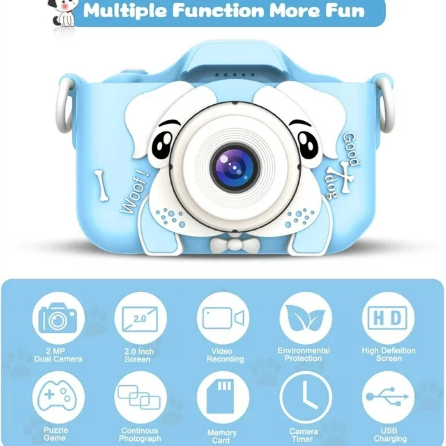 - 20 Million Pixels&1080p Video – Our newly upgraded kids’ camera has 20 million pixels HD lens both front and rear, 4x digital zoom, 1080p video recording, and 2-inch IPS eye-protection screen which can avoid harming your child’s vision.