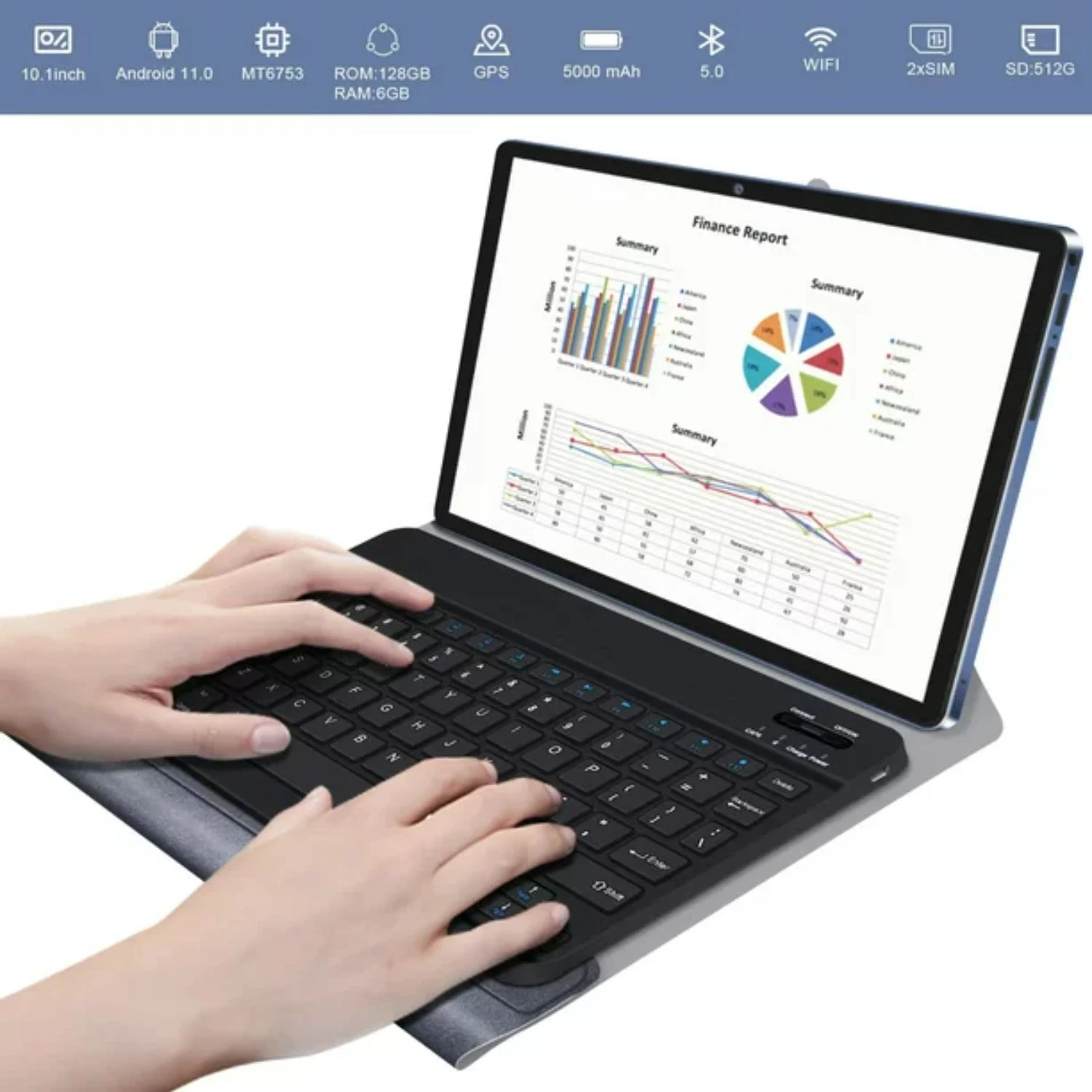 The VANWIN 10.1 inch tablet S18 comes with a keyboard, protective case, Bluetooth headset, and 128GB Micro SD card. Android 11 tablet computer 6GB RAM 128GB ROM 512GB extended octa-core processor dual Sim card slot GPS WiFi Bluetooth 1920 * 1080 IPS HD touch screen. It is suitable for various situations, such as reading, photos, videos, music, watching movies, playing games, or working. It has a fashionable appearance, light weight, and is easy to carry, making it a good companion for travel. Powerful capacity storage