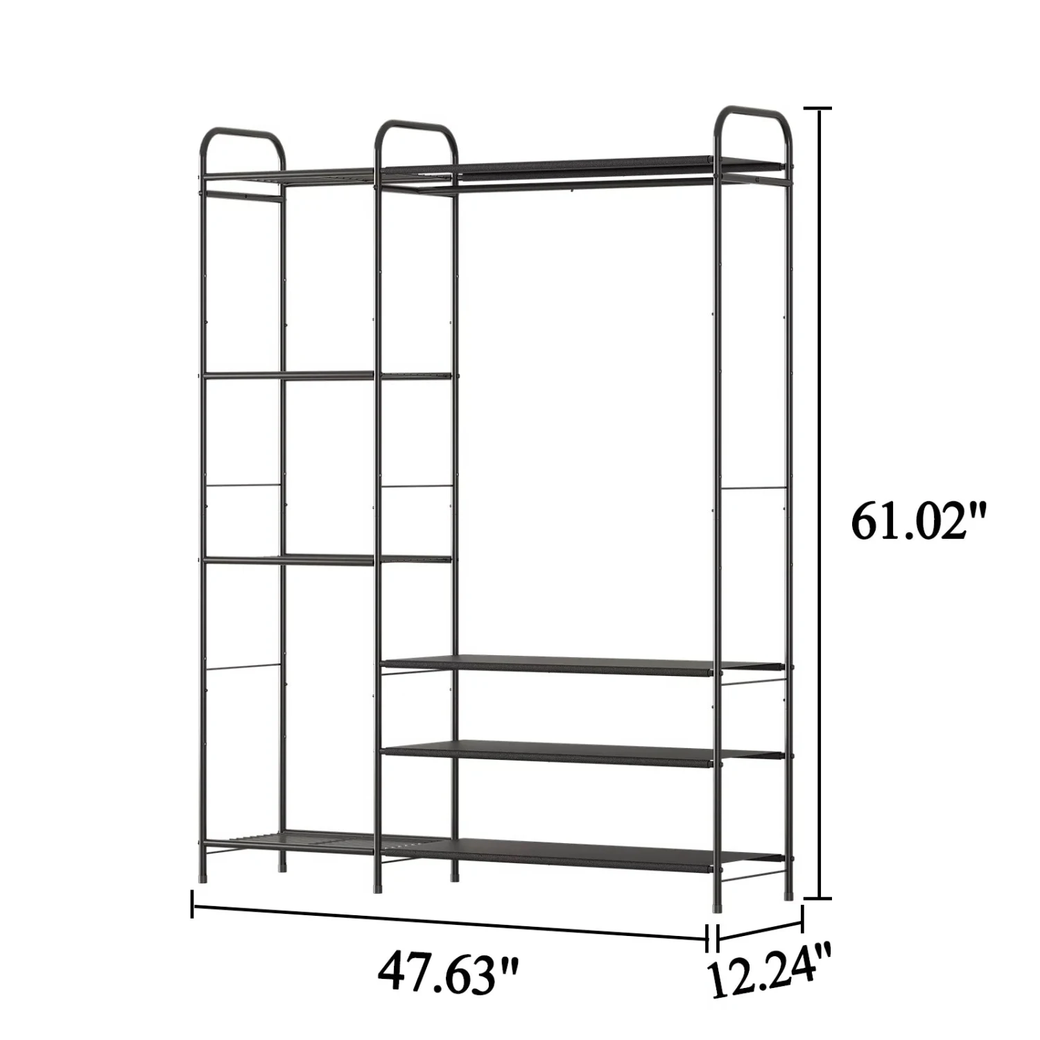 REMOVABLE HANGER: Unlike wall hangers, these free-standing clothes rack are self-contained and can be moved. Put it anywhere in your house or office one day, change your mind the next AMPLE STORAGE: Wisdom Star garment rack includes many shelves, providing ample space to storage clothes, bags, hats, umbrellas and more. Rectangular shelves in the base can be used for shoes or boxes. Metal clothing rack help keep your living space clean and organized