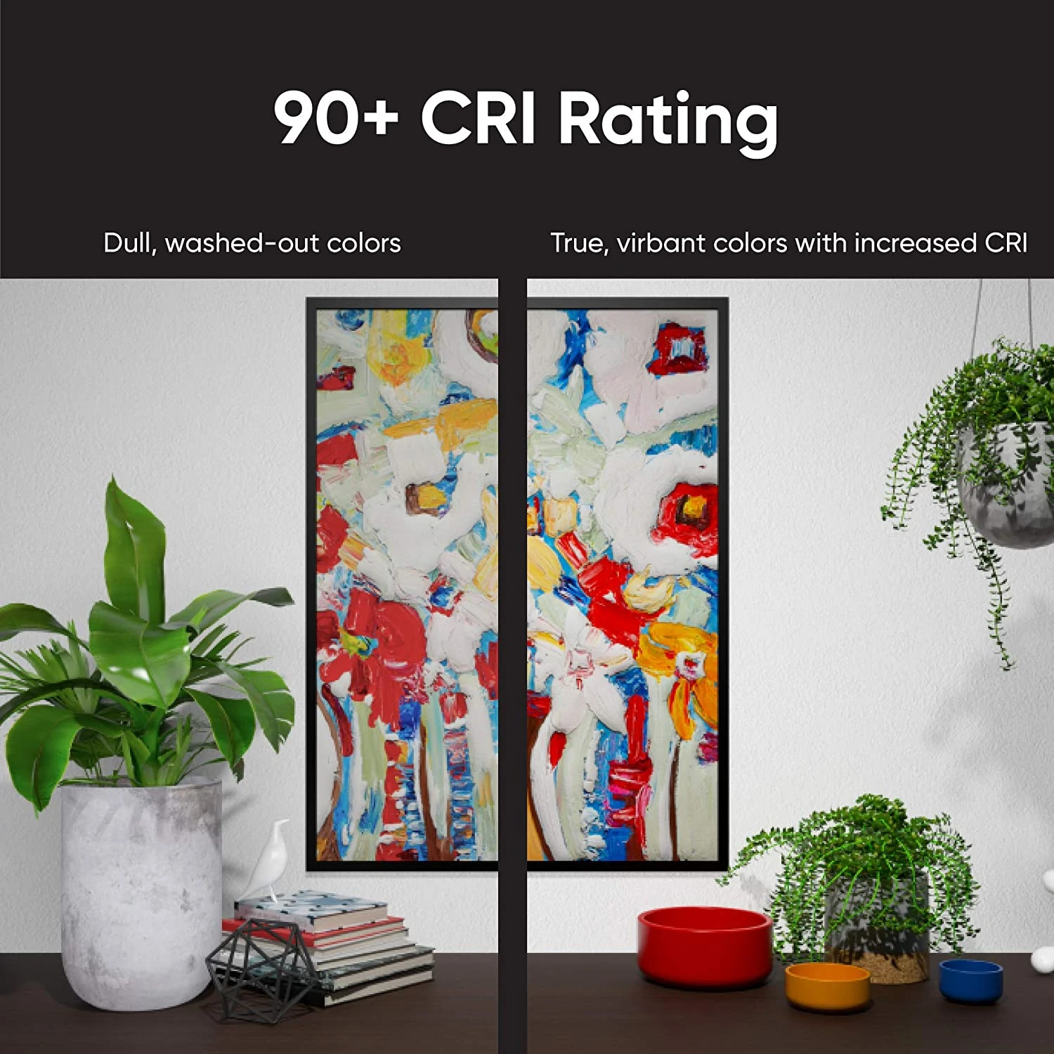 90+ CRI Rating – See truer and more brilliant colors in your home with an advanced Color Rendering Index (CRI) rating. Never mistake navy for black in your closet again.